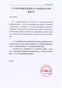 关于部分经销商过度渲染公司与政府机关合作的澄清公告