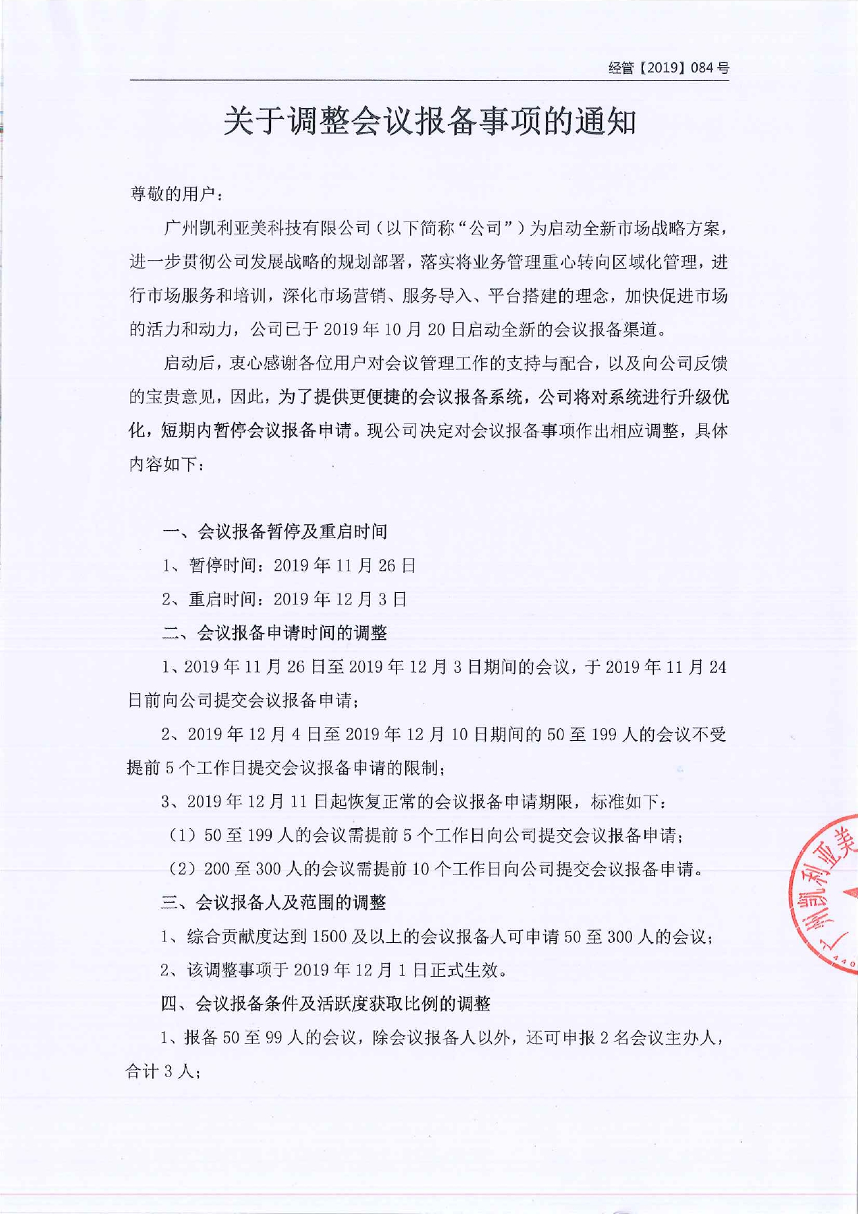 关于调整会议报备事项的通知