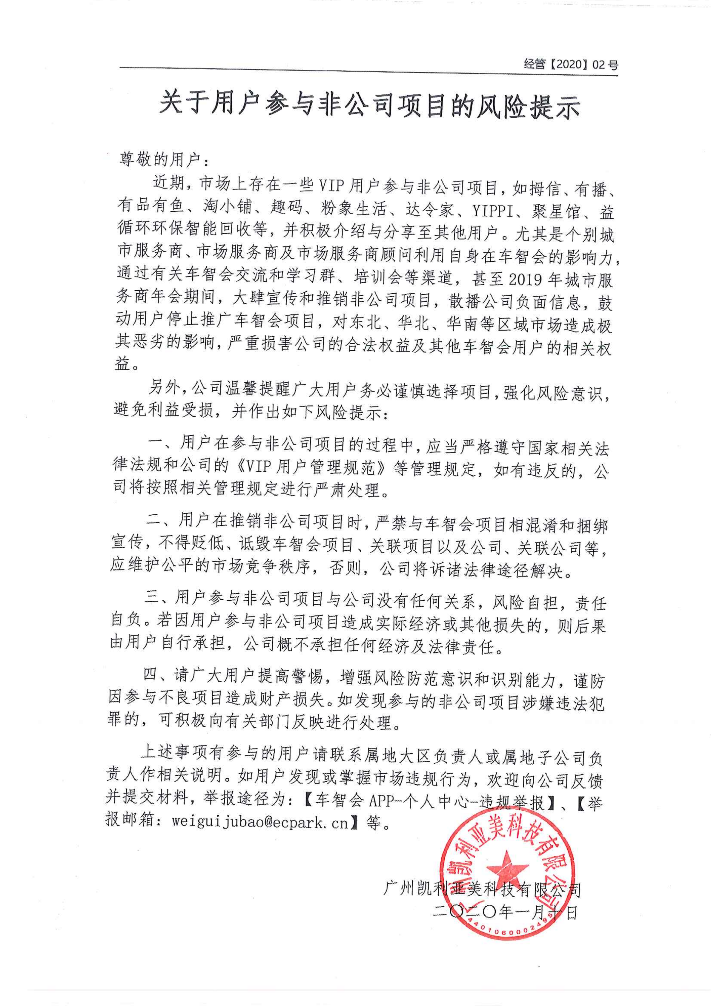 关于用户参与非公司项目的风险提示