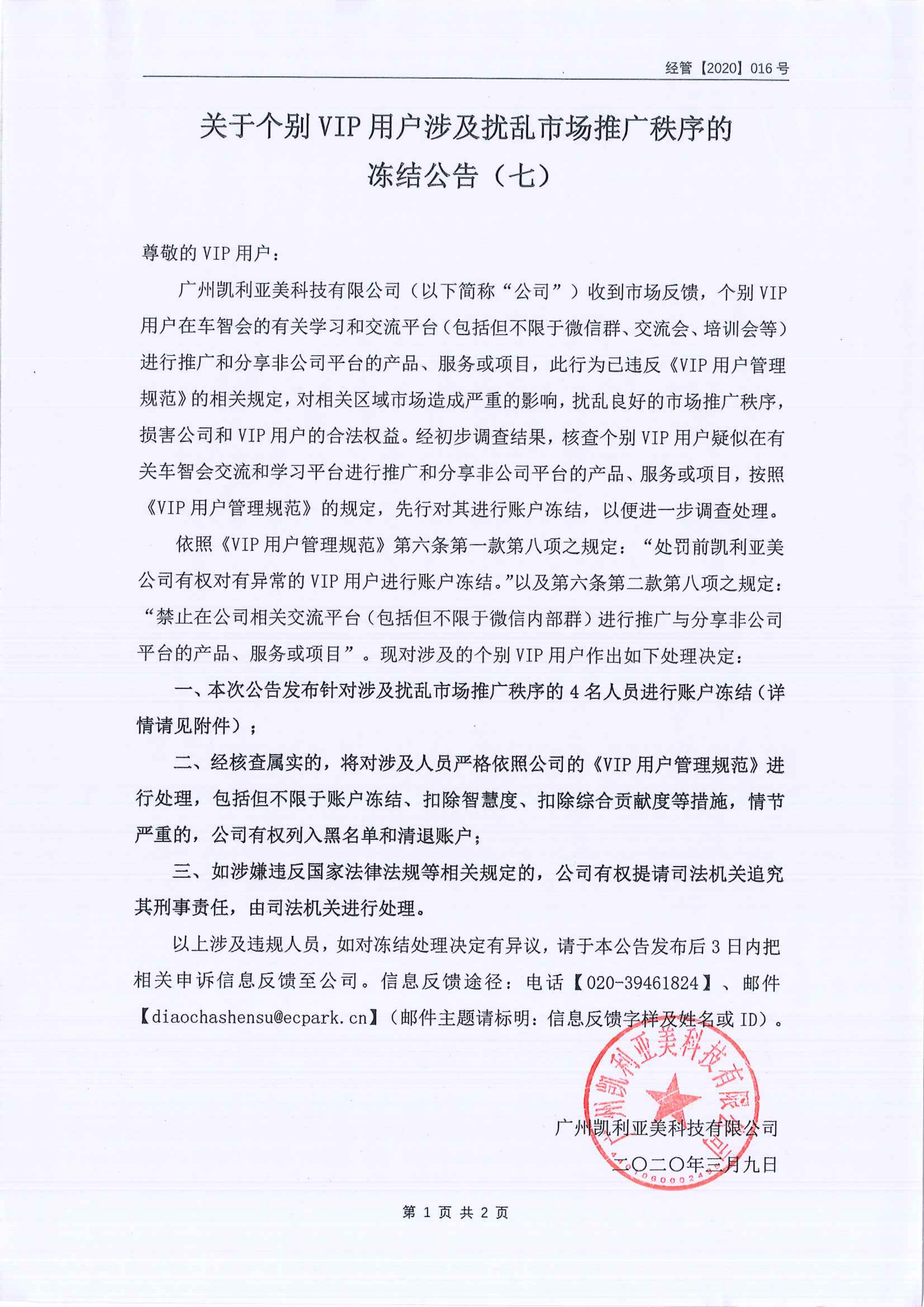 关于个别VIP用户涉及扰乱市场推广秩序的冻结公告(七)