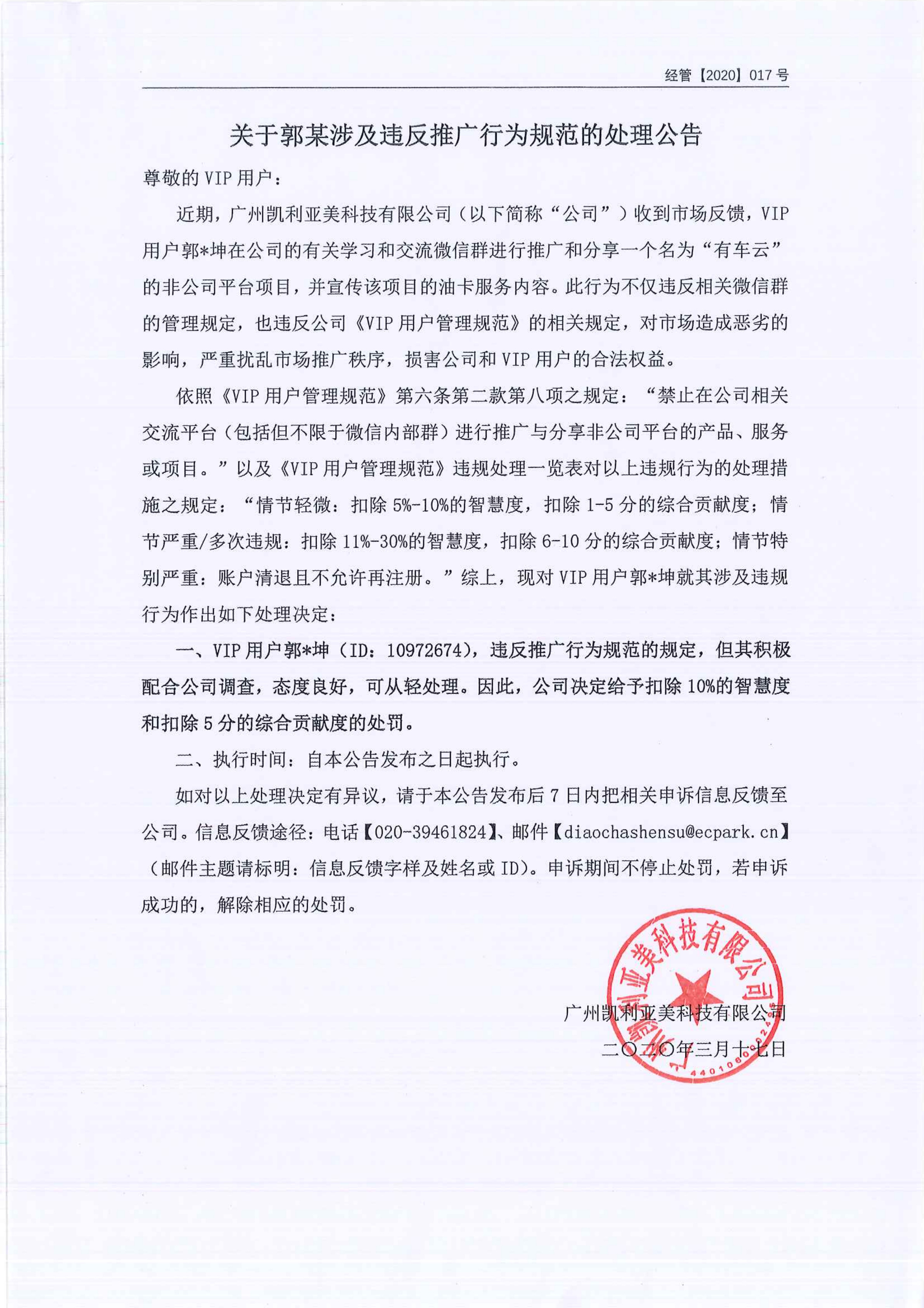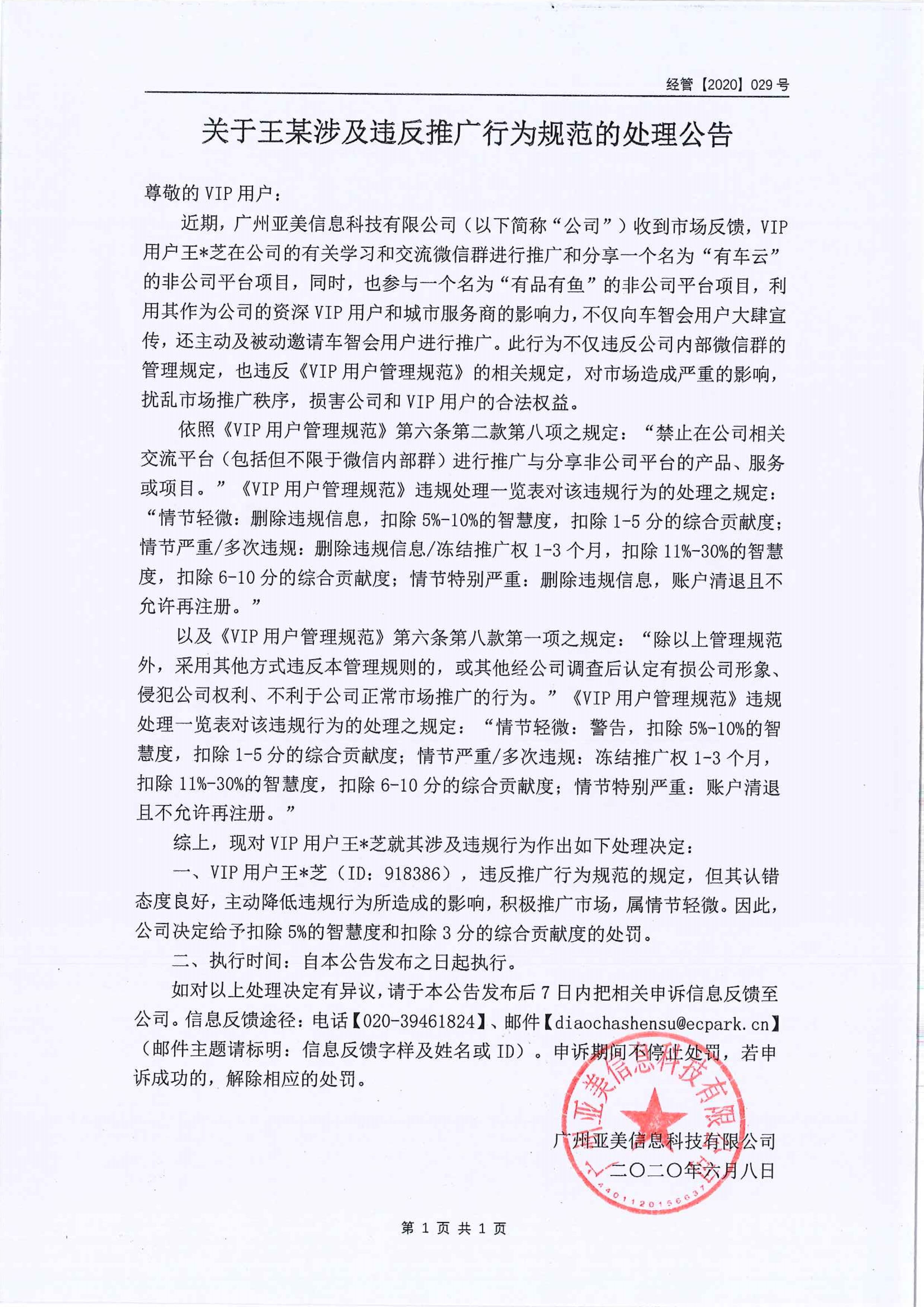 关于王某涉及违反推广行为规范的处理公告 (2)
