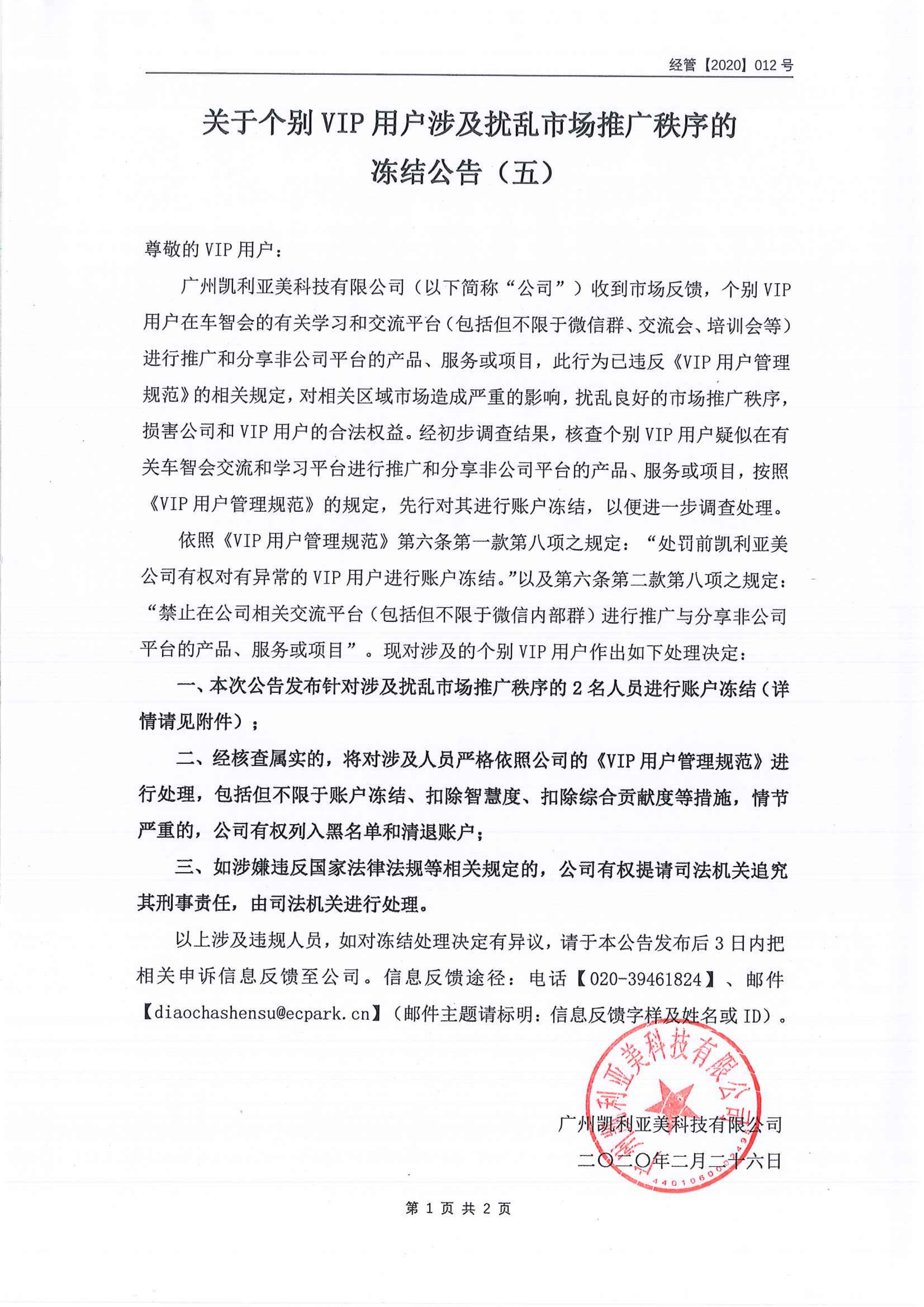 关于个别VIP用户涉及扰乱市场推广秩序的冻结公告(五)