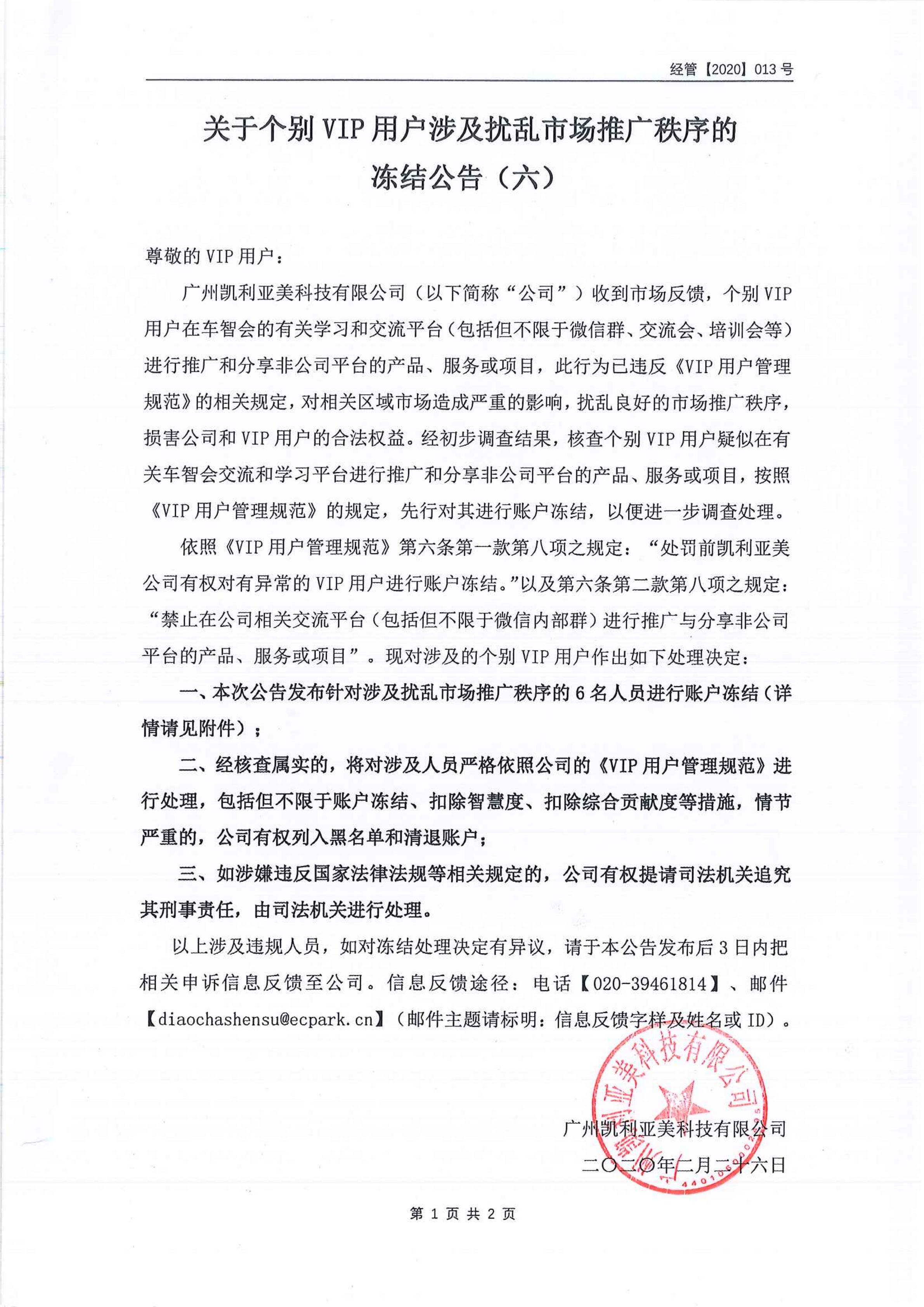 关于个别VIP用户涉及扰乱市场推广秩序的冻结公告(六)
