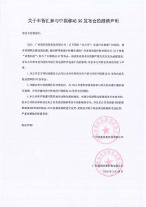 关于车智汇参与中国移动 5G 发布会的澄清声明