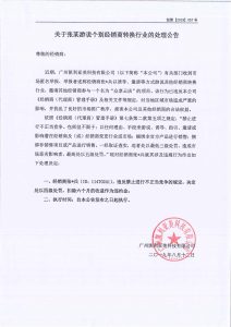 关于张某游说个别经销商转换行业的处理公告