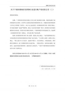 关于个别经销商涉及转换行业进行冻结的公告(三)