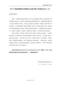 关于个别经销商涉及转换行业进行冻结的公告(六)