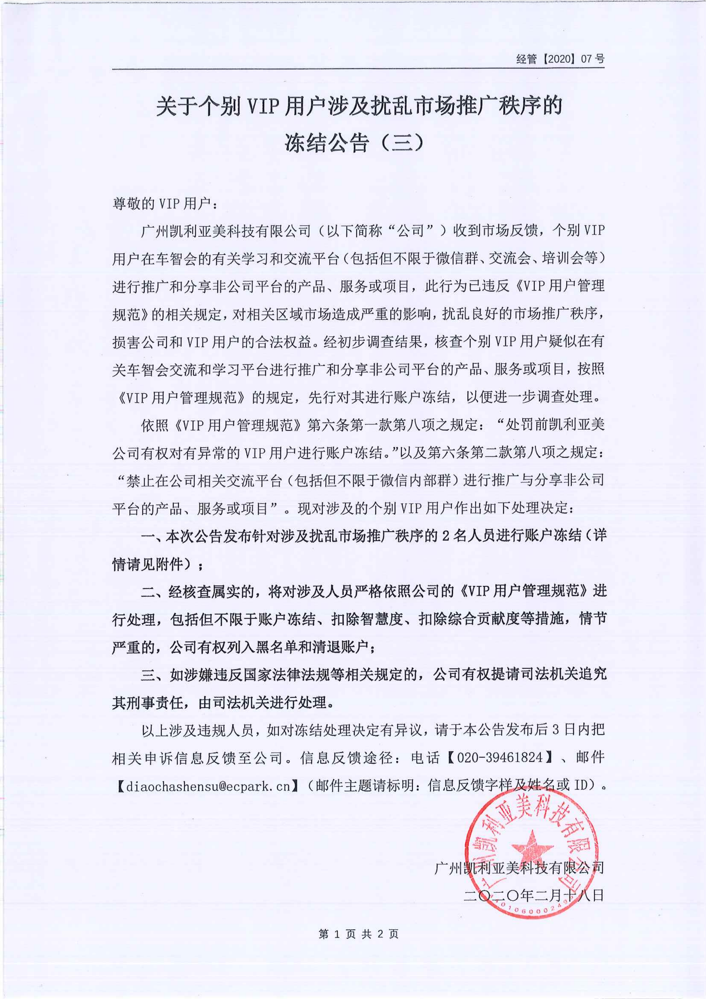 关于个别VIP用户涉及扰乱市场推广秩序的冻结公告(三)